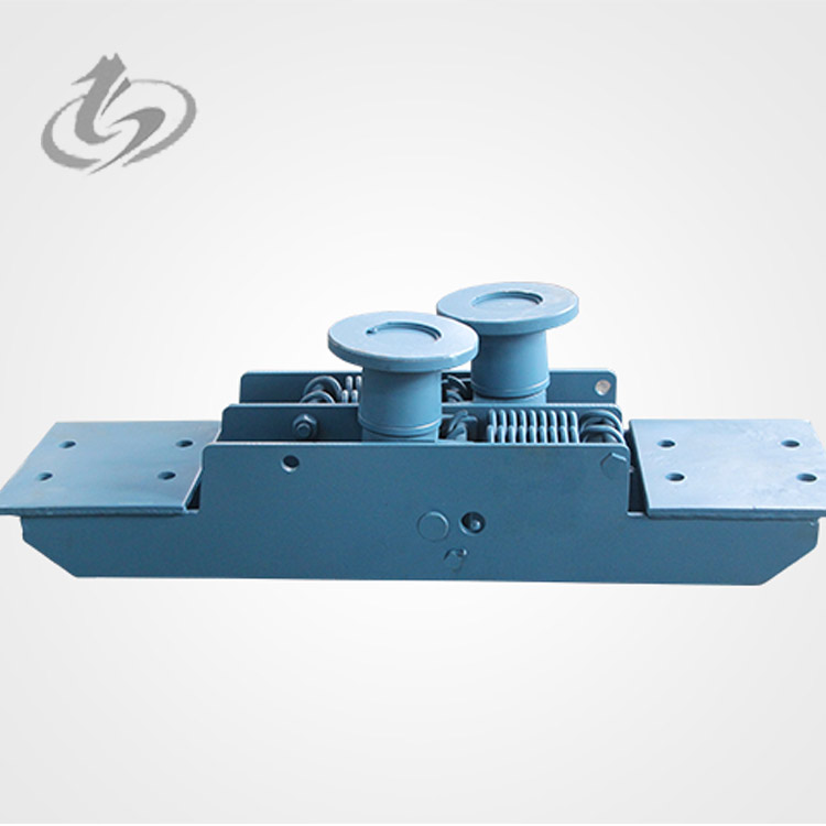 無極繩絞車在起伏變化巷道運(yùn)行時(shí),鋼絲繩的上漂與拉棚,直接影響著系統(tǒng)運(yùn)行甚至巷道支護(hù)的安全。因此,為防止、鋼絲繩上漂,出現(xiàn)拉棚現(xiàn)象、并有效地防止車輛掉道,就必須采用可靠的主壓繩輪組。在軌道凹點(diǎn)處采用強(qiáng)制性壓繩,并防止兩鋼絲繩由于軌道不直而相互交叉。